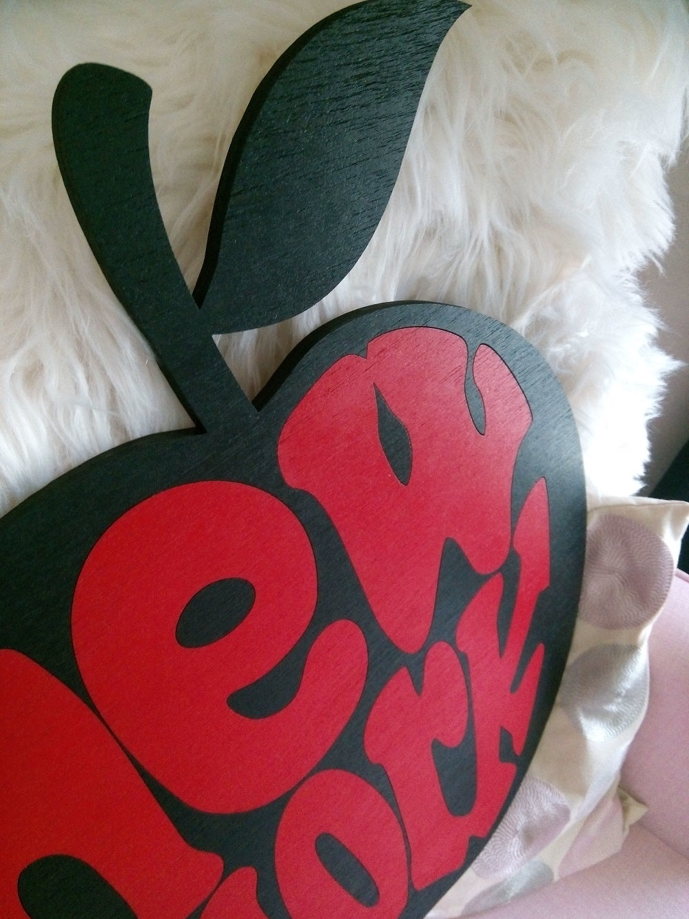 Chaque pièce en bois est découpée ,peinte puis imbriquée (colle) pour former cette Big Apple .